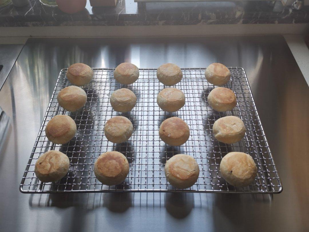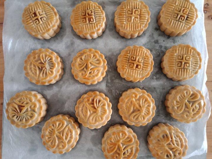 按此材料做,豆馅35克,饼皮30克,180℃烤10分钟,刷纯蛋黄液,再烤15分钟,不鼓腰,不泄脚,方子很好,以后就按此方...