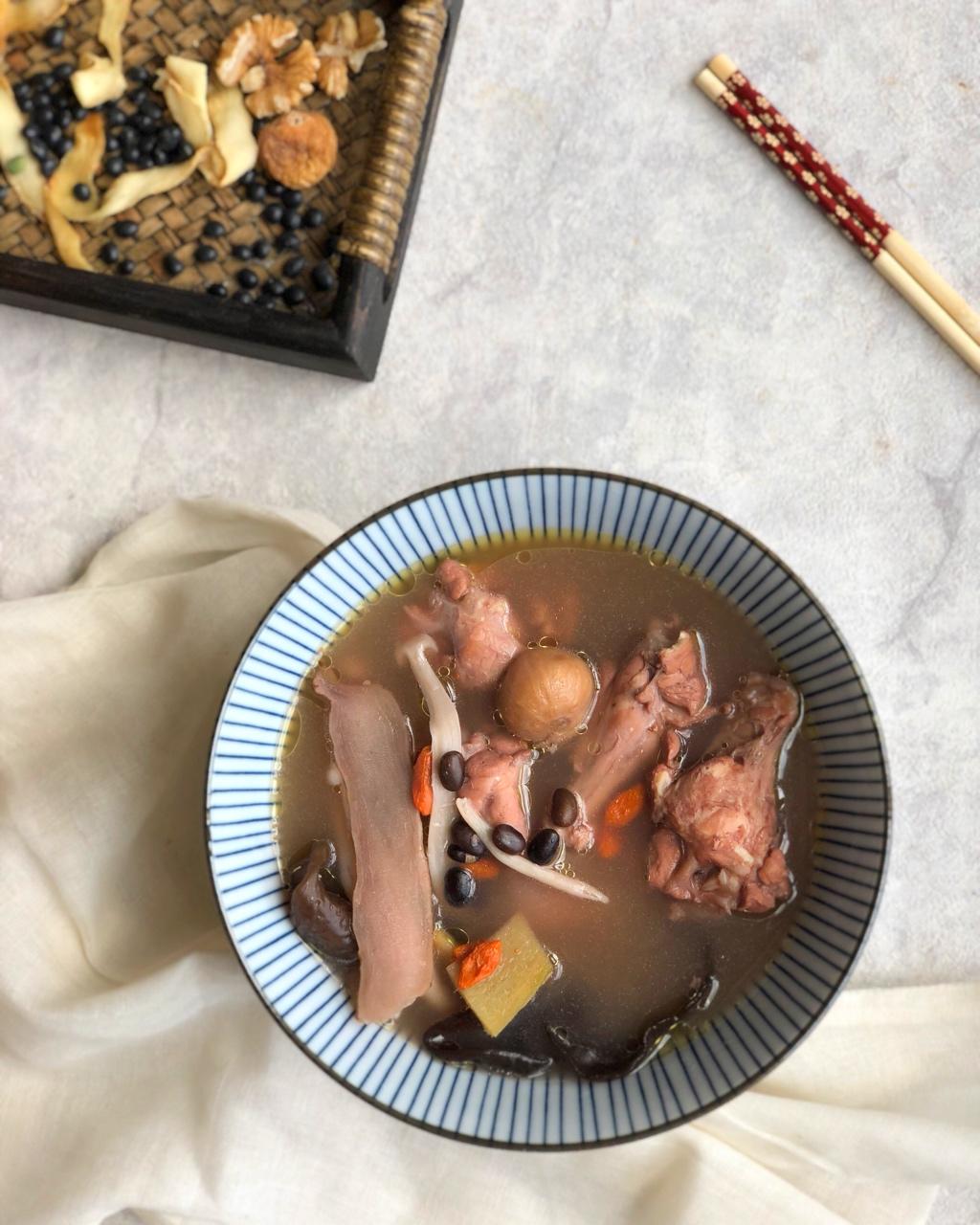 今天给邱先生煲的汤🥣:黑豆核桃鸡腿汤