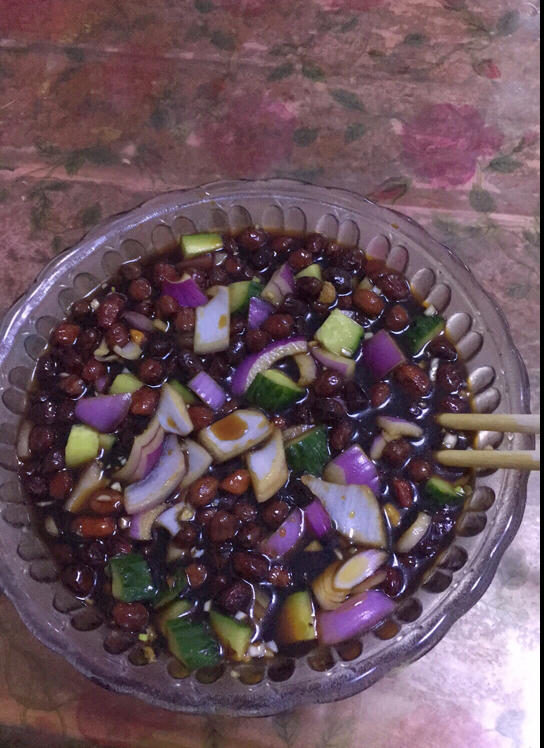 嘿嘿,晚上吃的油炸花生(炸过头了)泡一下入味,明天吃老醋花生