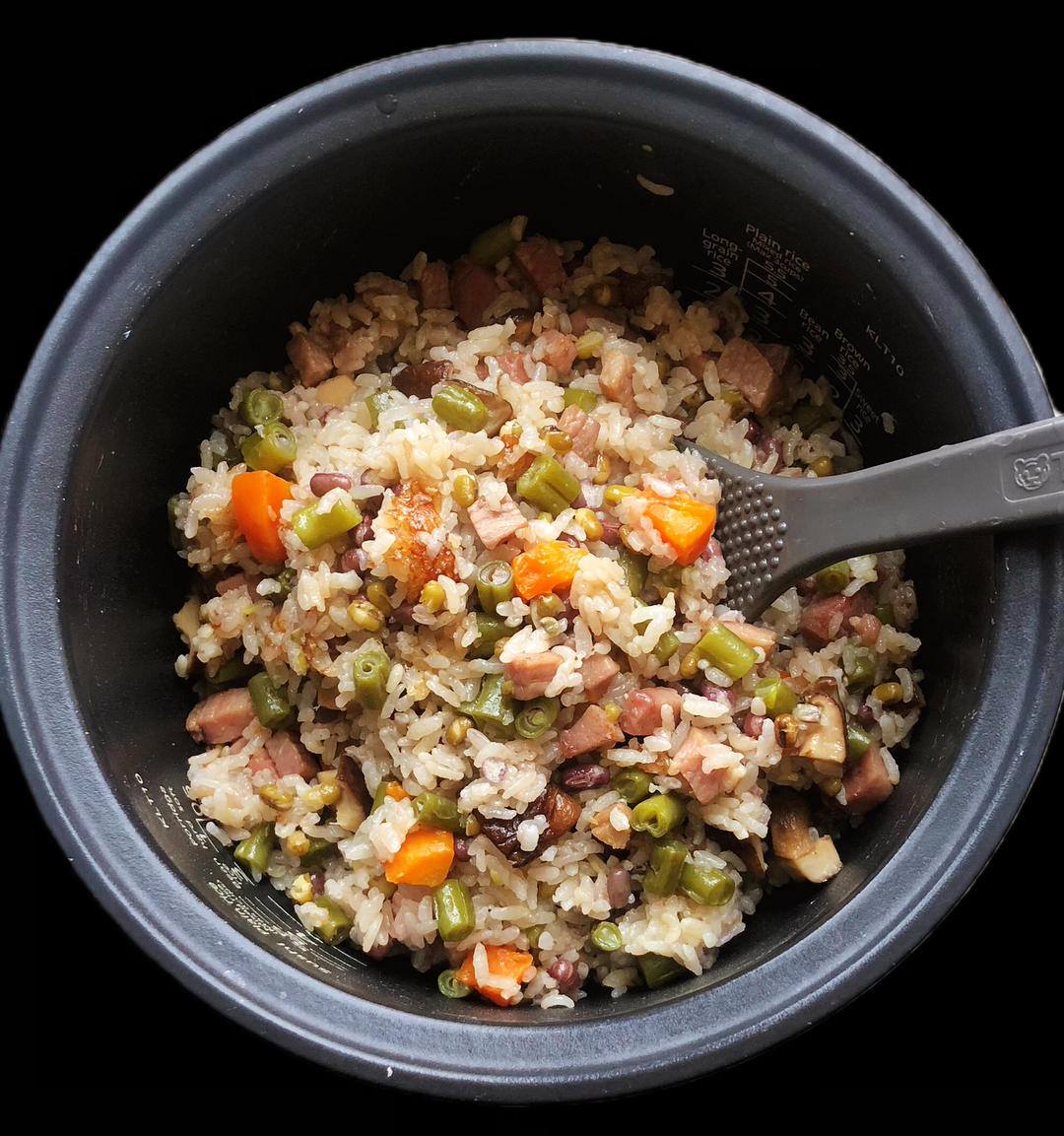 今天饭菜高度集成,做了锅含肉率很高的四季豆咸饭,里面有:红豆绿豆四季豆、咸肉香菇胡萝卜,晚餐配了个榨菜鸡蛋丝瓜汤。#二人...