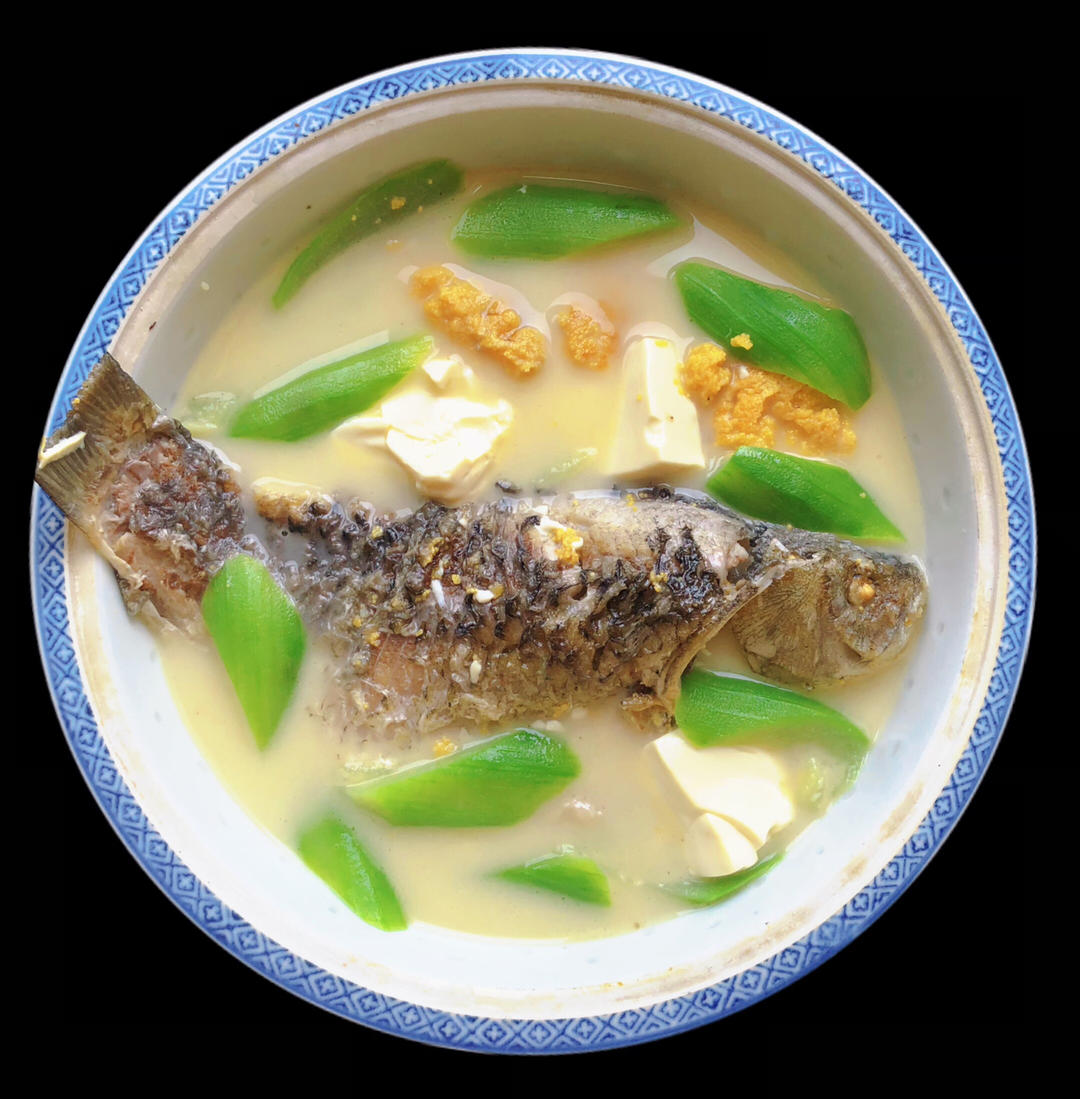 鲫鱼豆腐丝瓜汤、咸肉豆豉炒花菜、银鱼干焖蛋配丝瓜。