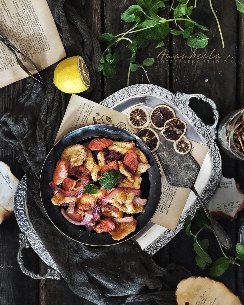 食物摄影小tips:对于造型层次本身就比较丰富的食物来说,器皿就尽量选择简约素净的,避免花哨。