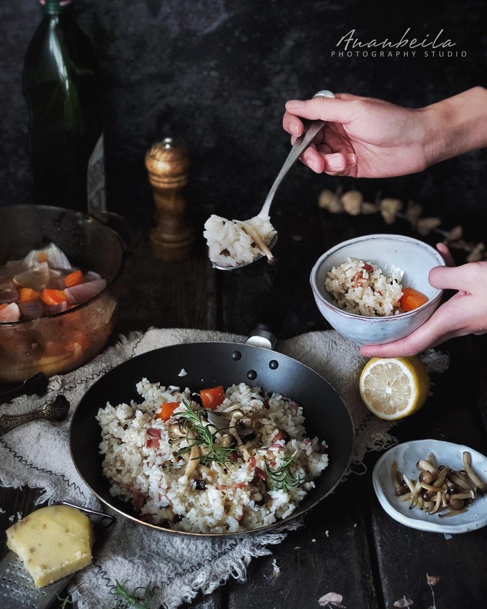 培根蘑菇高汤烩饭