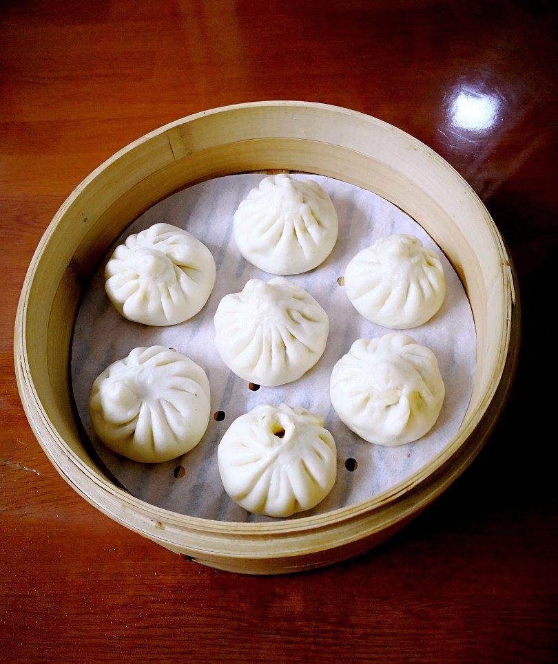 昨晚蒸的包子,有韭菜鸡蛋肉馅和自制豆沙馅,甜咸两...