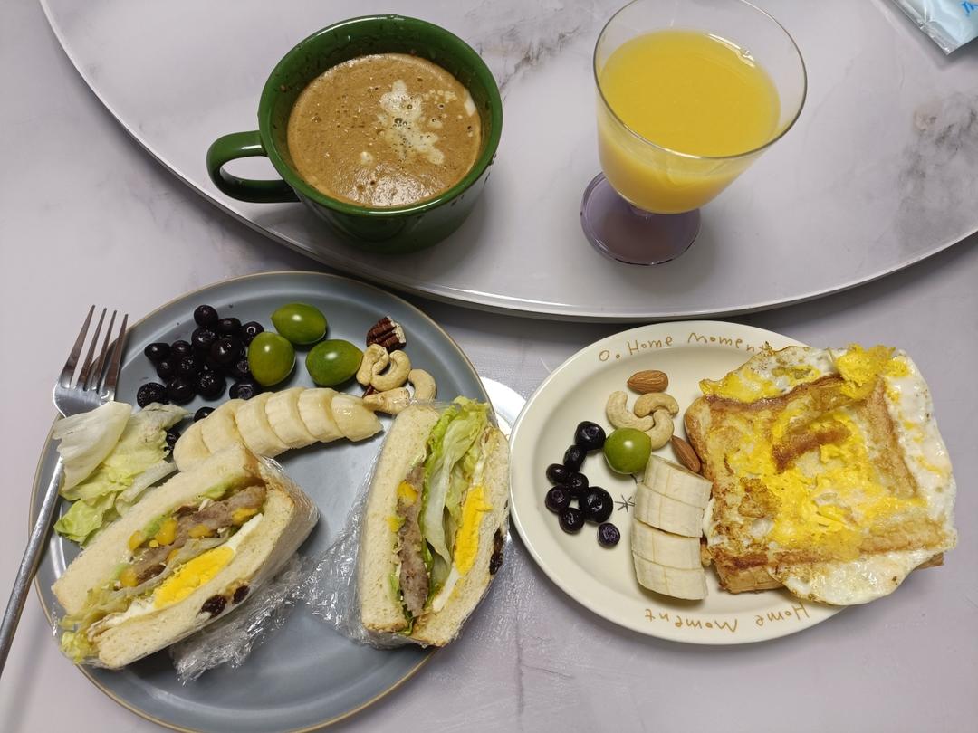 橙c美式,三明治,面包煎鸡蛋