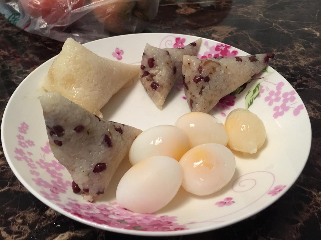 甜粽咸粽加鸽子蛋。