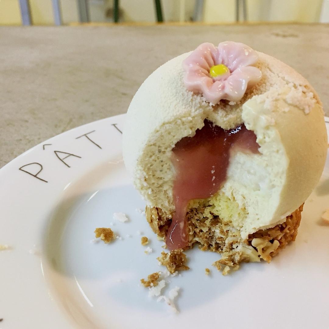 茉莉白桃慕斯。很适合夏天的甜品,最近追求慕斯切开一定要有流心。有空上食谱。