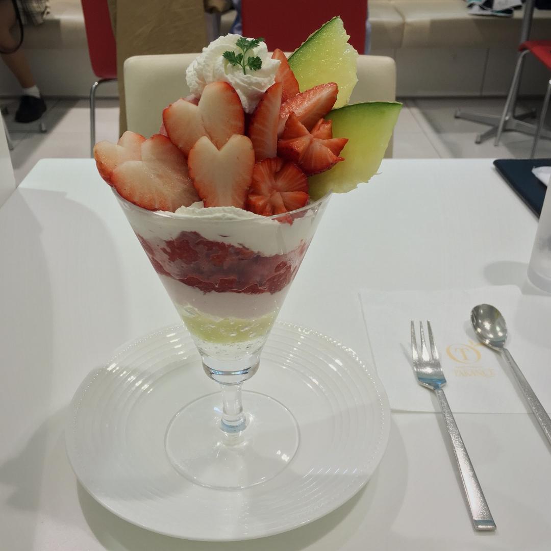 【きらぴ香苺🍓とやよいひめ苺🍓とマスクメロン🍈のパフェ】@【新宿高野TAKANO新宿高島屋店】