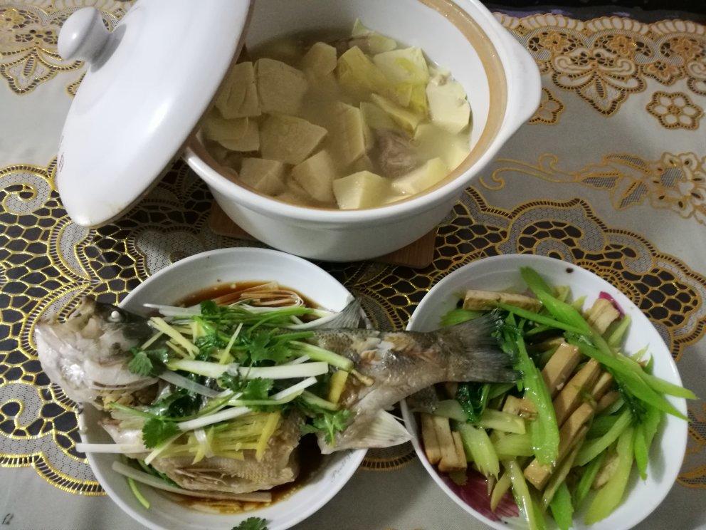 南方的春笋多又鲜,必须吃过瘾!腌笃鲜,清蒸鲈鱼,豆干西芹😊