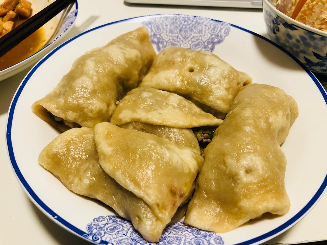 周四晚上的烫面韭菜虾仁鸡蛋盒子~
