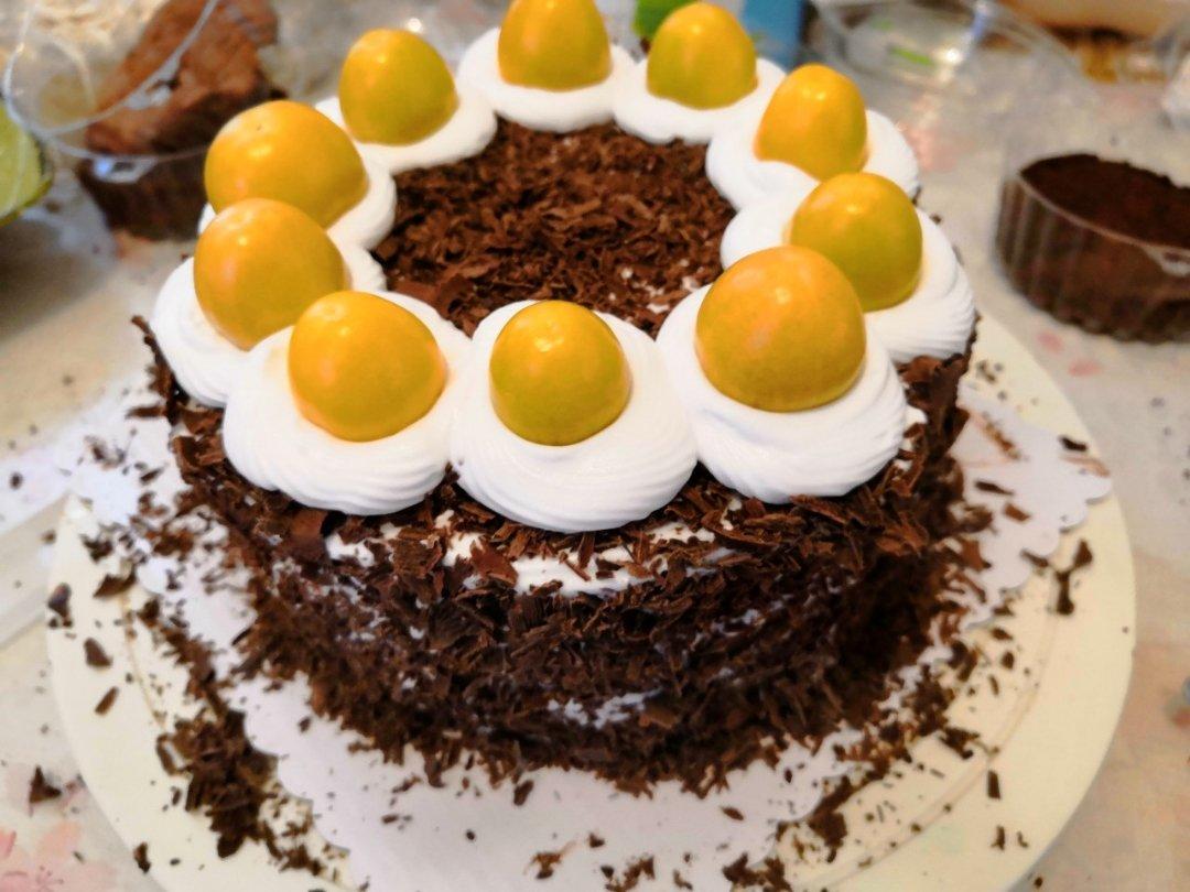 孩子今天阴历是生日,终于不要冰雪奇缘蛋糕了,赶紧做个简单的黑森林,没有樱桃,用了姑娘果!