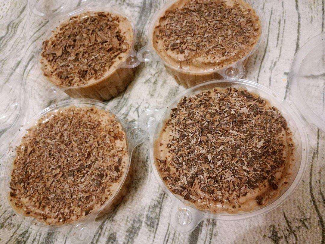 做了戚风底,五蛋四个四寸小戚风,一个四寸加高戚风,淡奶油、巧克力酱2:1,淡奶油270克...