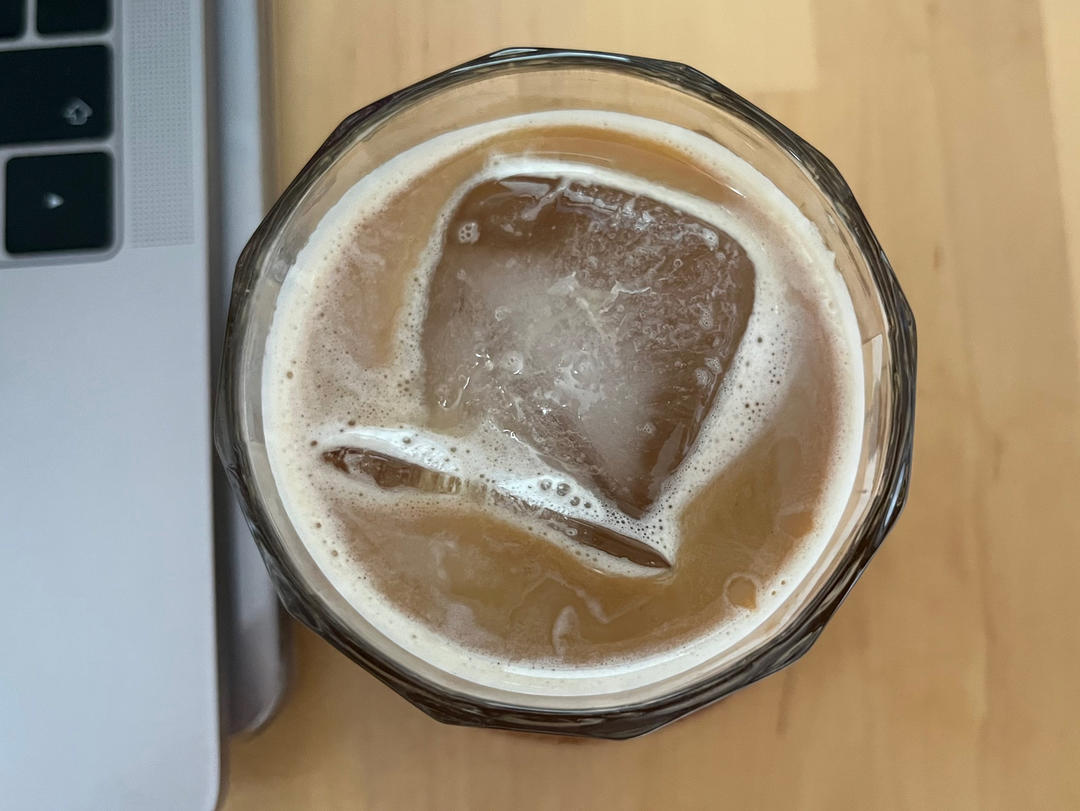 早上一杯冰咖啡牛奶。