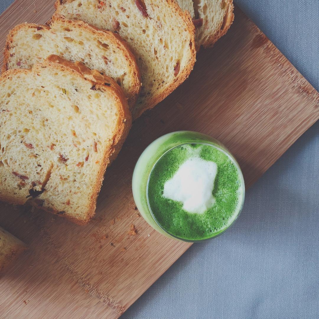香葱培根🥓吐司🍞➕抹茶🍵🥛