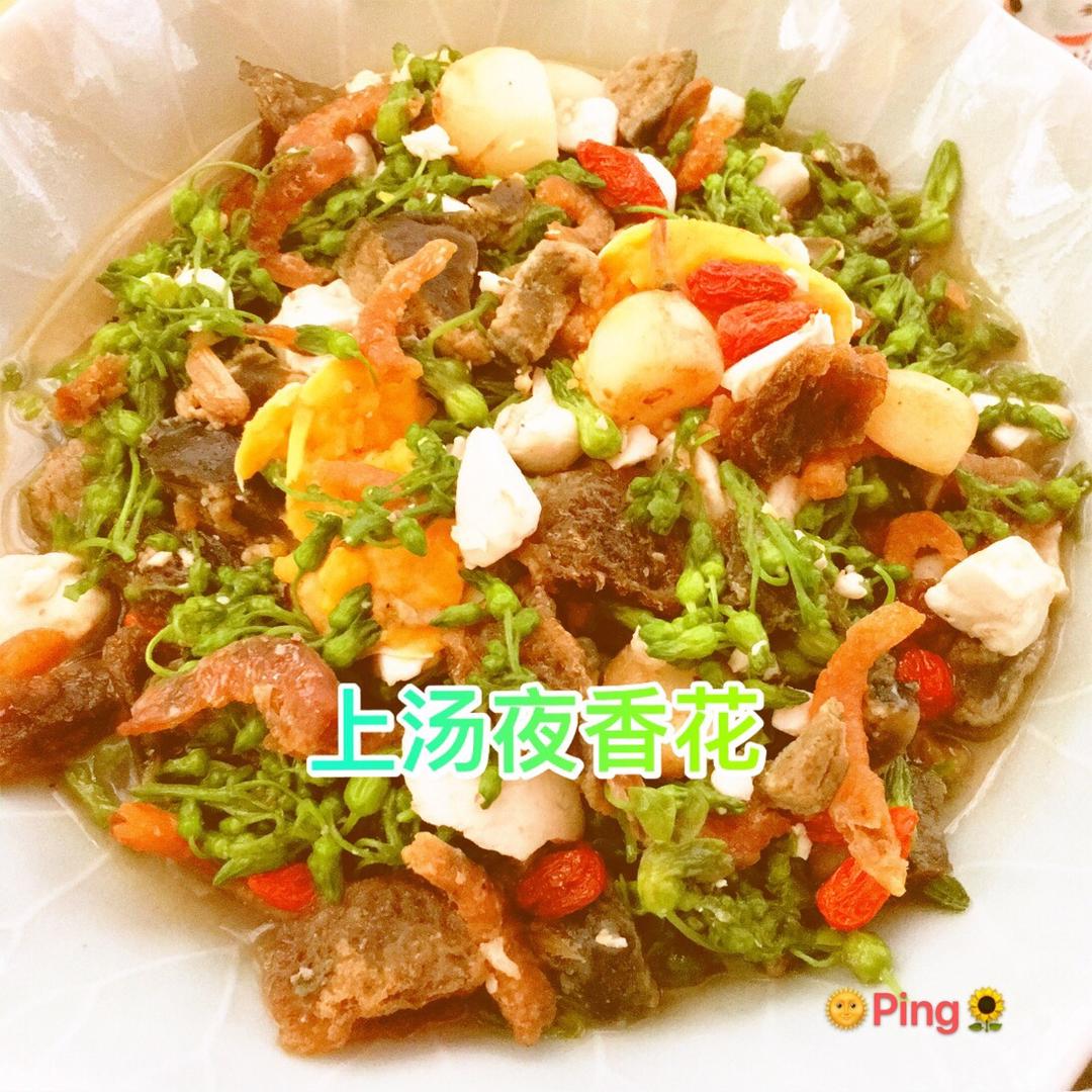 夜香花炒蛋,这个季节刚好有夜香花,来到广东,认识了这种食材