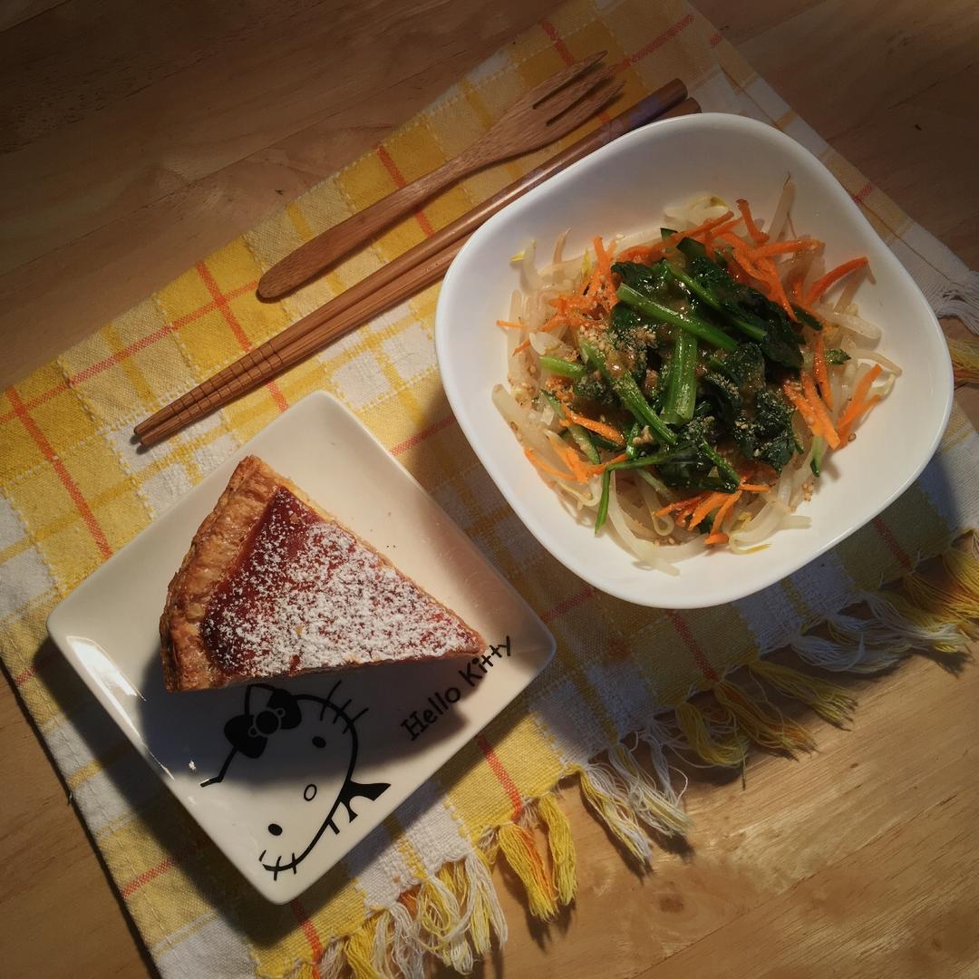 【草莓芝士蛋糕苹果派+菠菜拌豆芽】(前三)