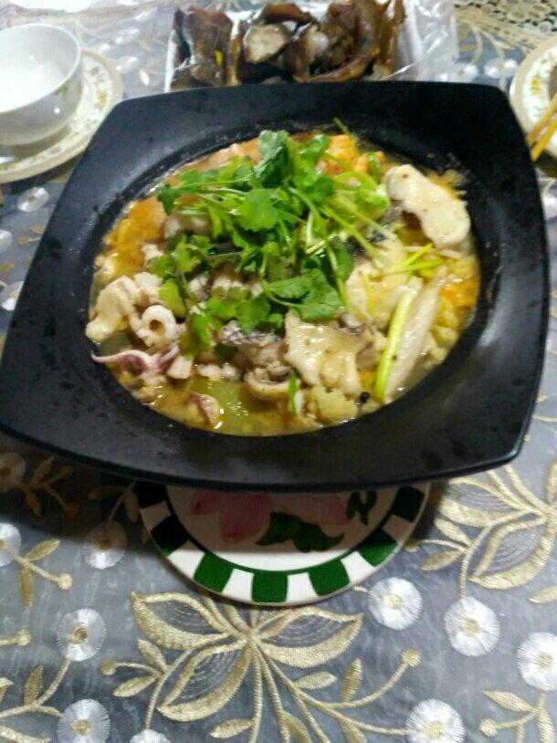 潮州四鲜砂锅煲,鲜鱿,九节虾,鲍鱼,花蚌,配上潮州的特式酸菜及各种时菜,按先热慢热的步骤一层一层摆在砂锅,盖上盖蒸十五分...
