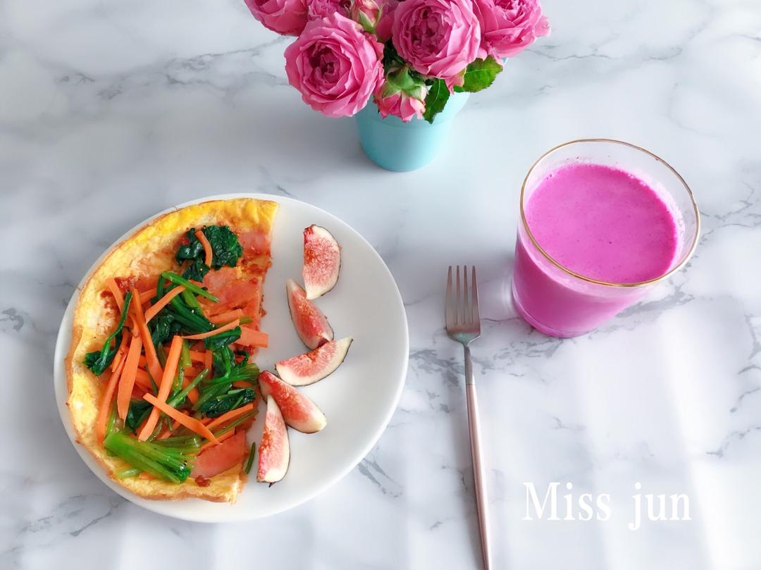 「今日食:豪华版手抓卷饼+火龙果奶昔+无花果」