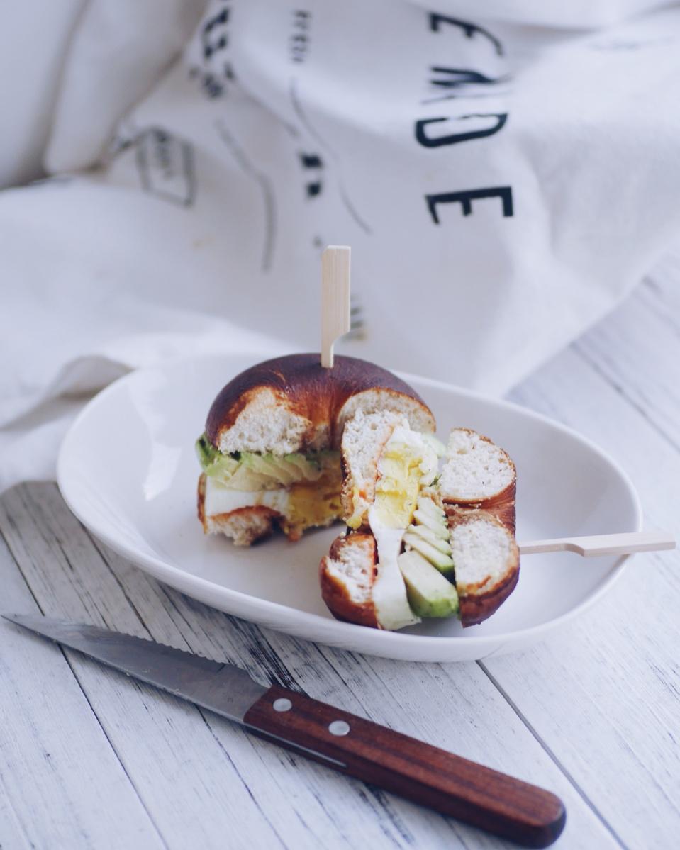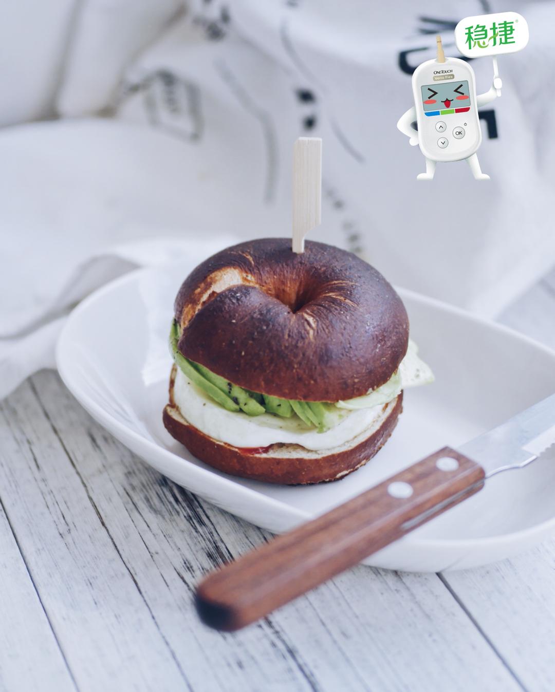 碱水全麦贝果+牛油果+煎蛋