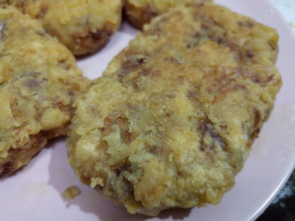 儿子今晚做的可乐饼,里面加了一个熟鸡蛋,又增加它的口感层次。。。给个赞。。👍👍👍👍