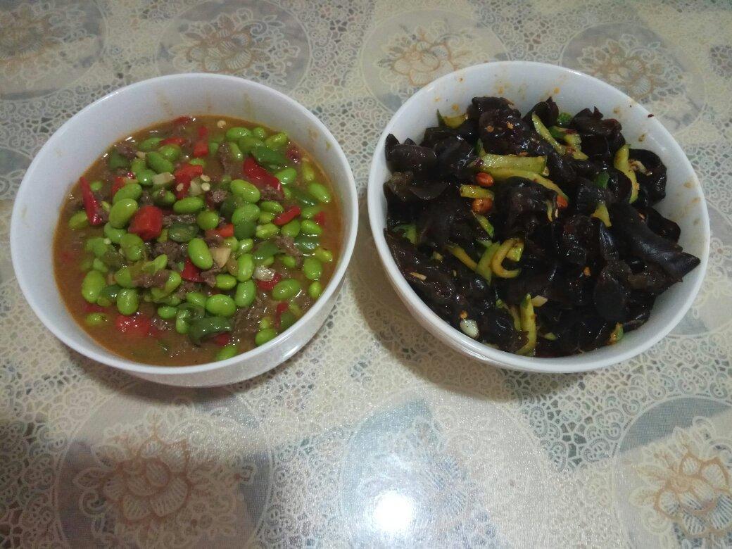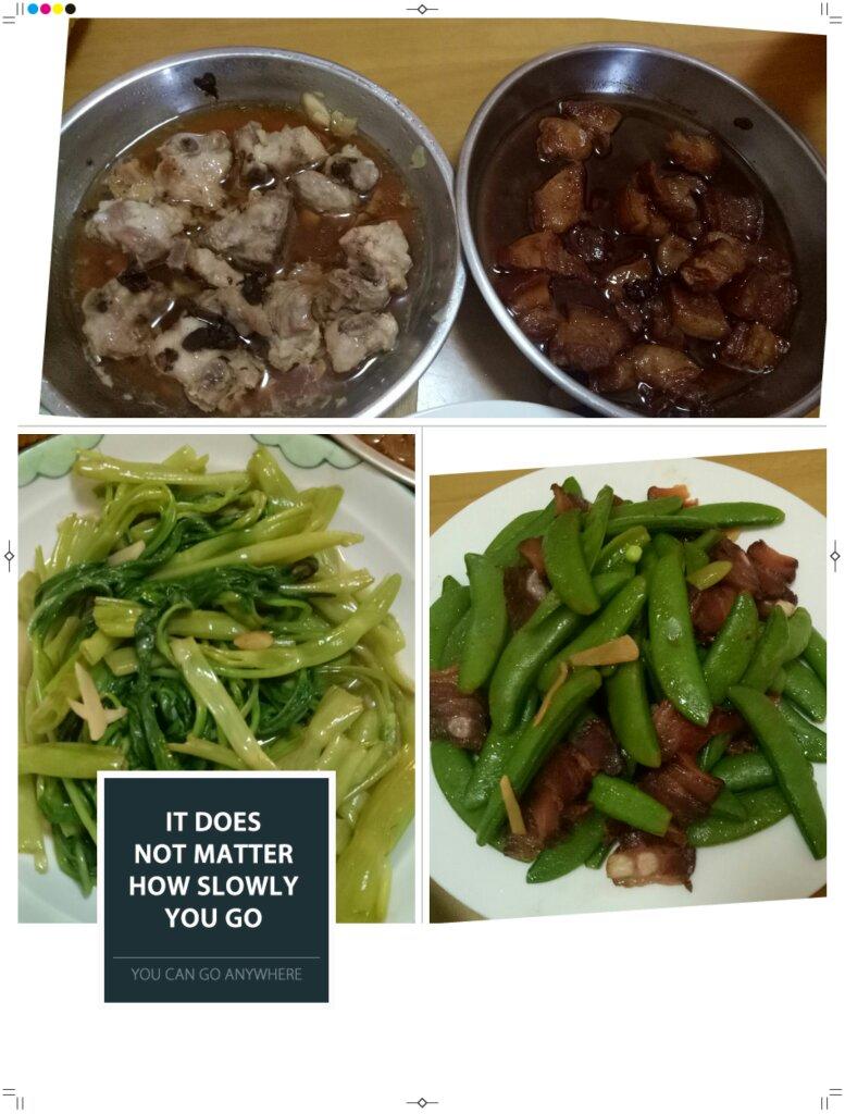 新鲜的: 腐乳通菜,腊肉炒甜豆