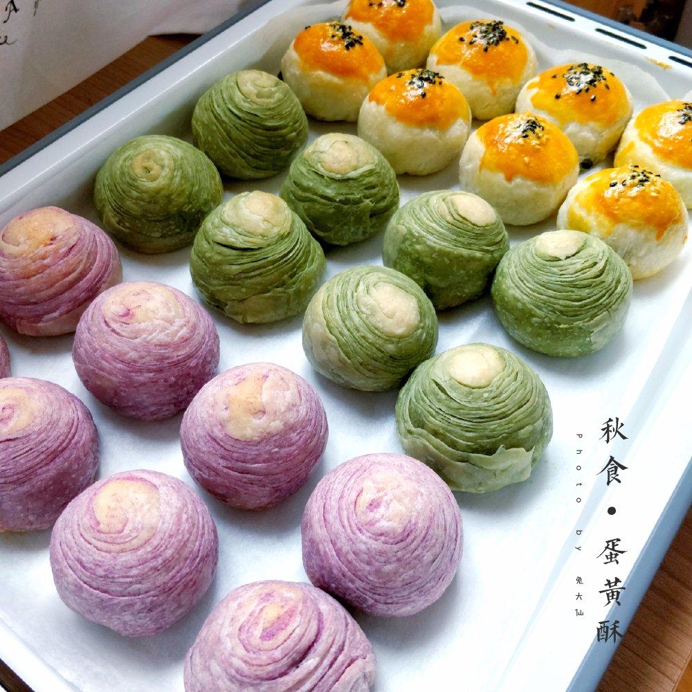擀卷能力有待提升,不同颜色的蛋黄酥做起来也不麻烦,很喜欢这个方子,就是一开始没开空调温度有点高,油酥都...