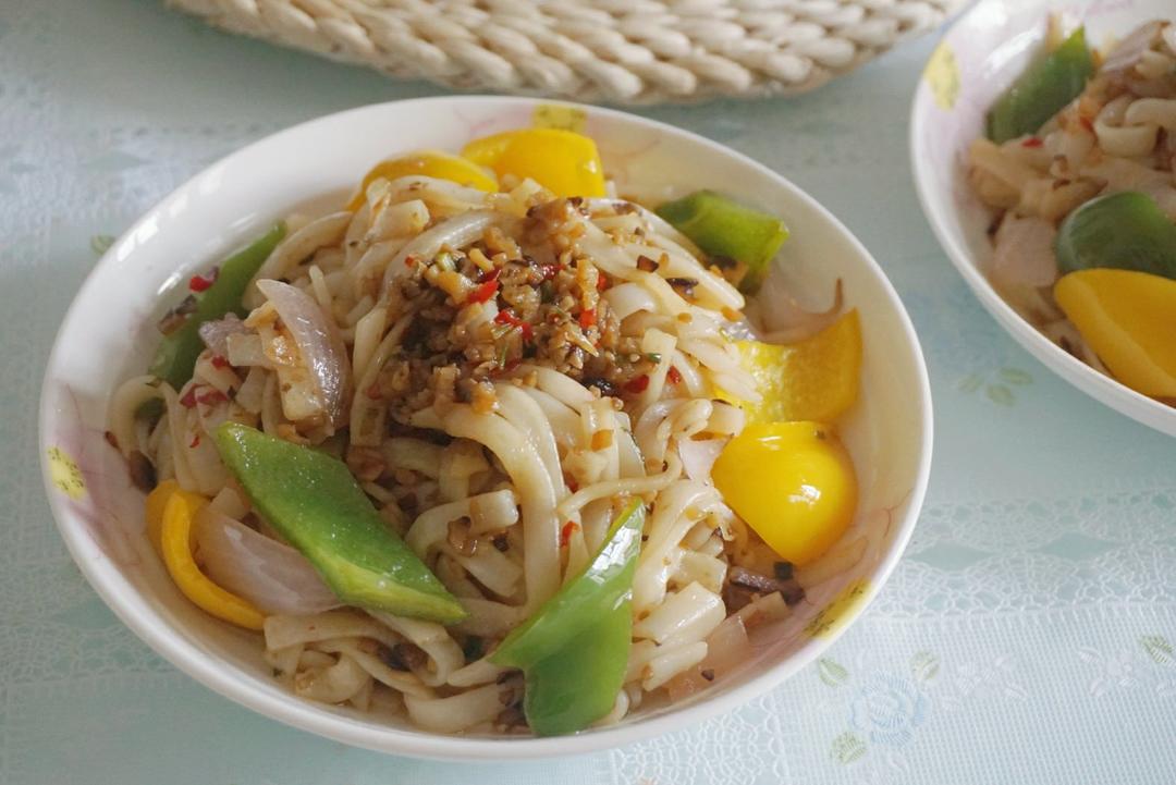 油腻腻的香菇肉酱炒河粉