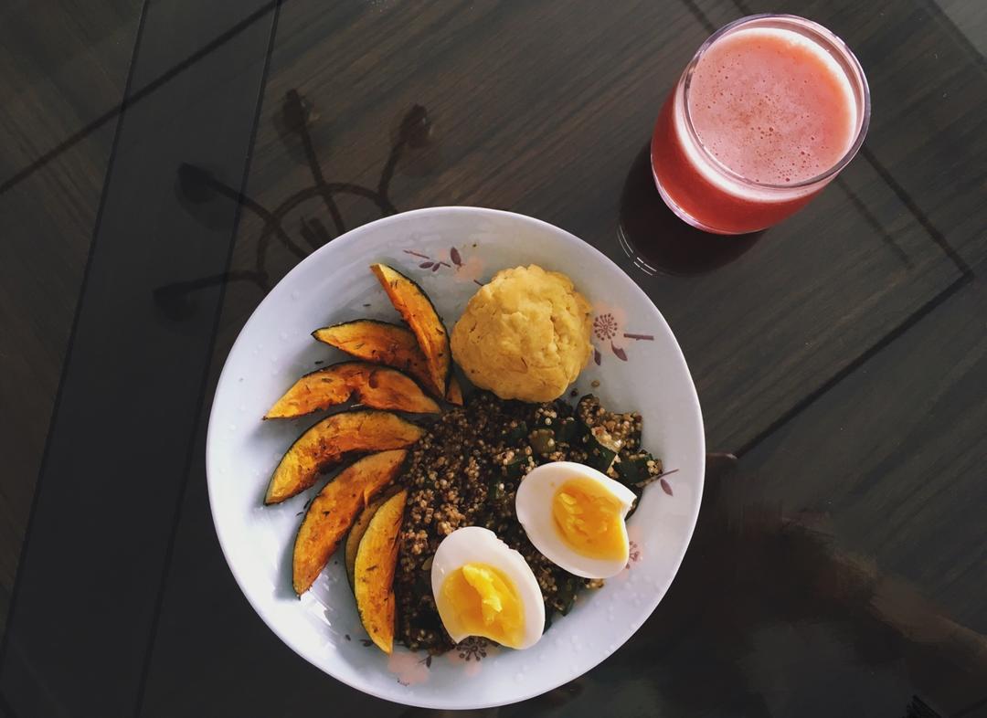 烤南瓜配藜麦红薯球