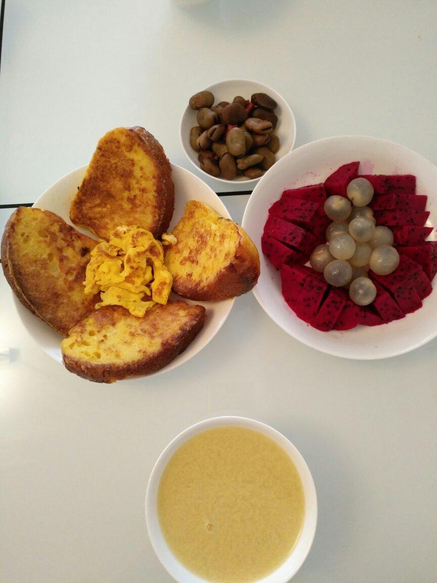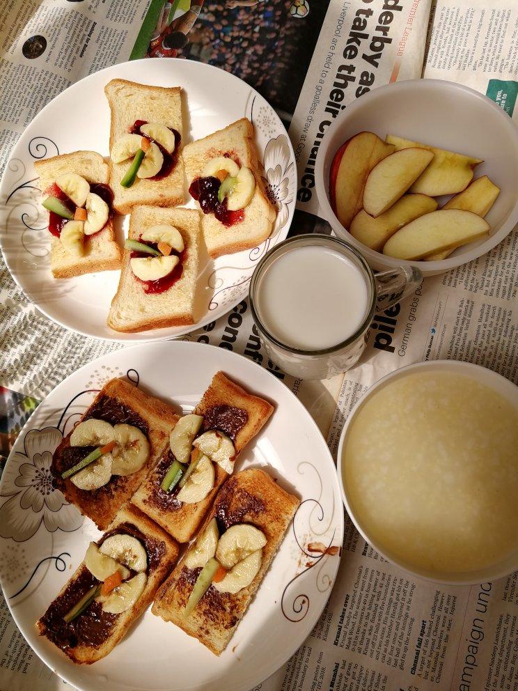 简单早餐👏果酱吐司、牛奶和小米粥😄