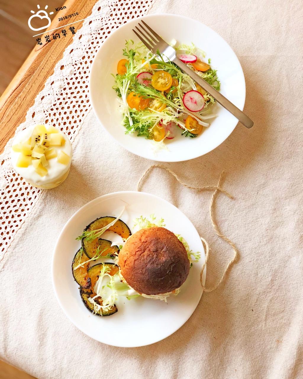 今日早餐🥣金枪鱼小汉堡、自制酸奶奇异果🥝