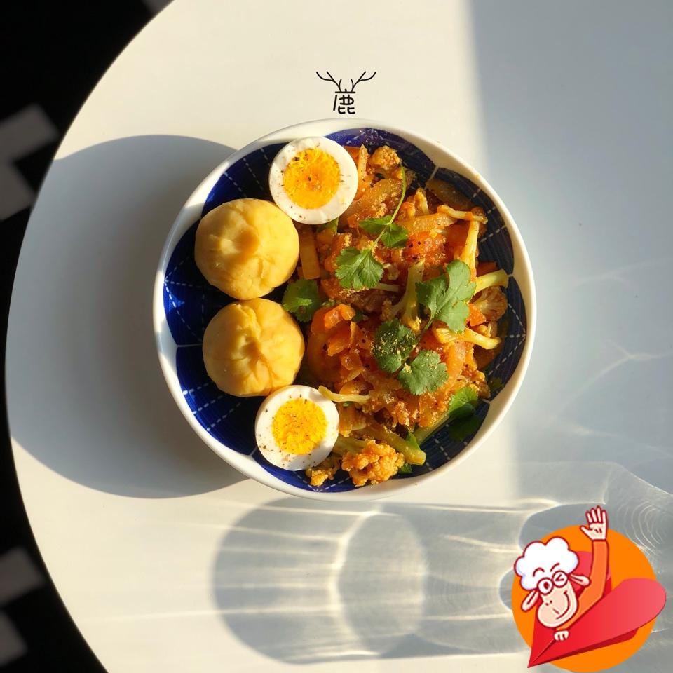 红薯泥、水煮蛋,