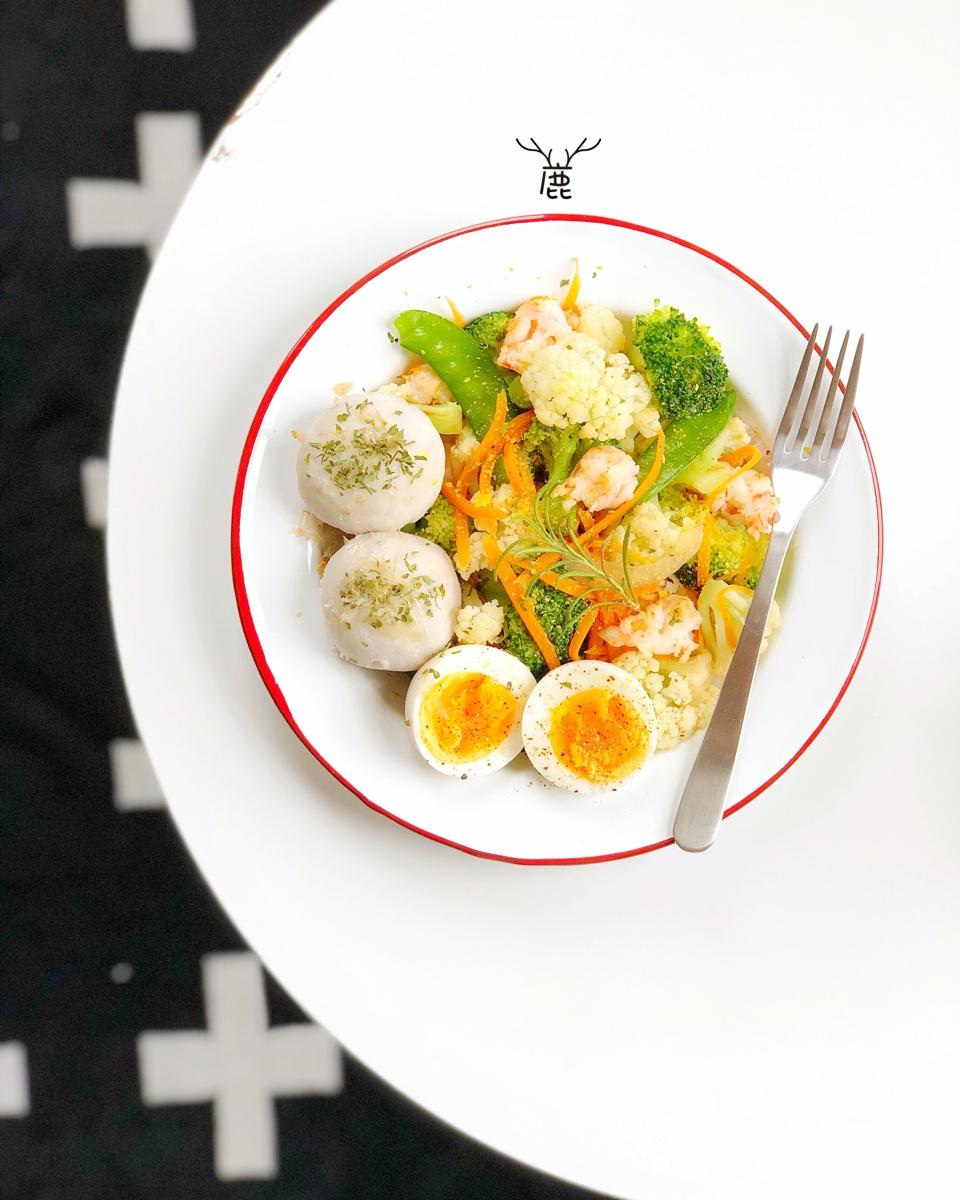 鸡蛋鹰嘴豆西兰花白玉菇牛油果沙拉!