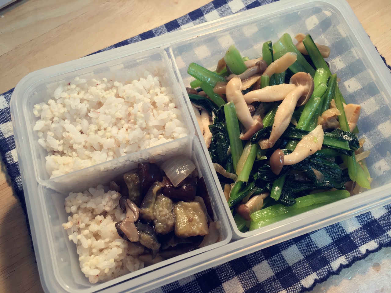 【榨菜蟹味菇炒小松菜+洋葱蟹味菇鸡肉烩茄子+二米燕麦饭】(123&4567&...