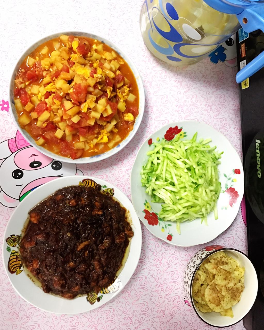炸酱面&西红柿土豆鸡蛋打卤,再来点麻酱黄瓜丝儿
