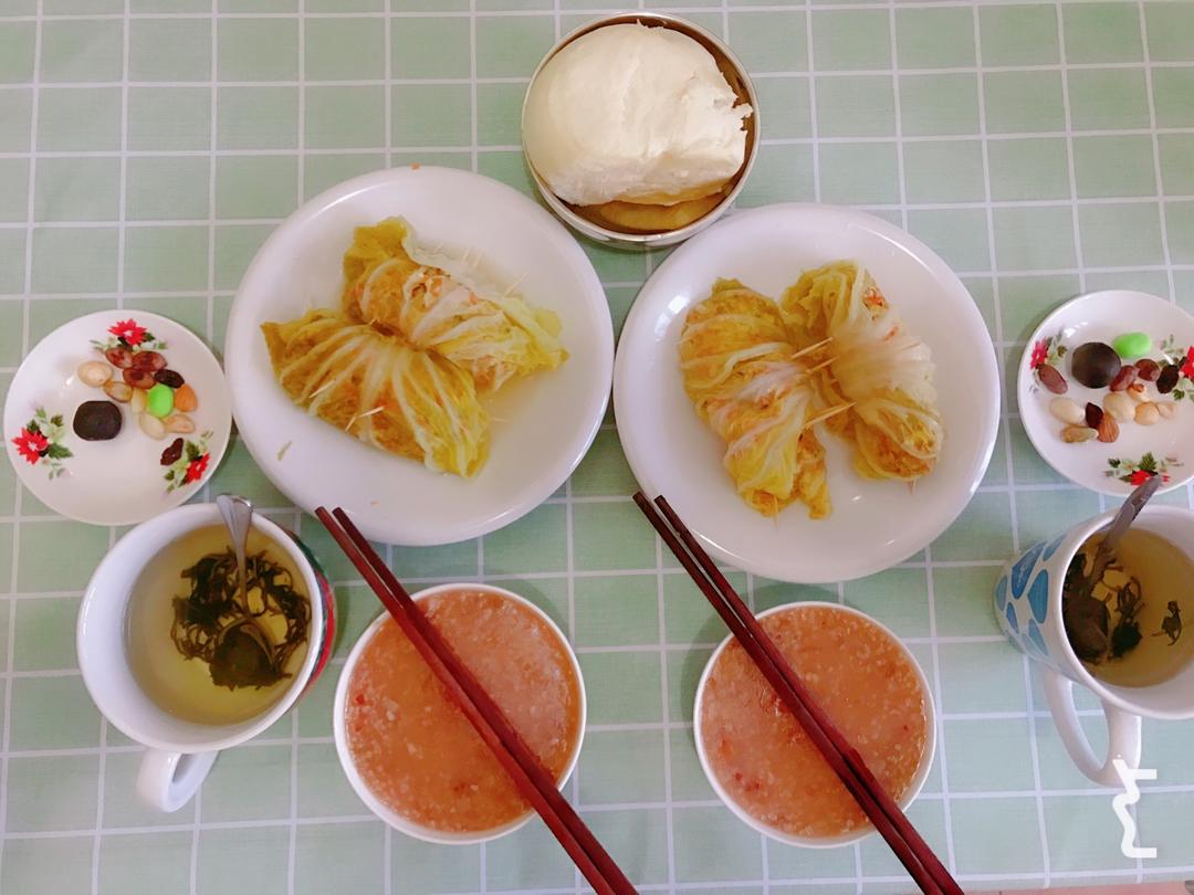 红米荞麦粥&每日坚果&海鲜什锦菜卷&蒲公英茶&大馒头