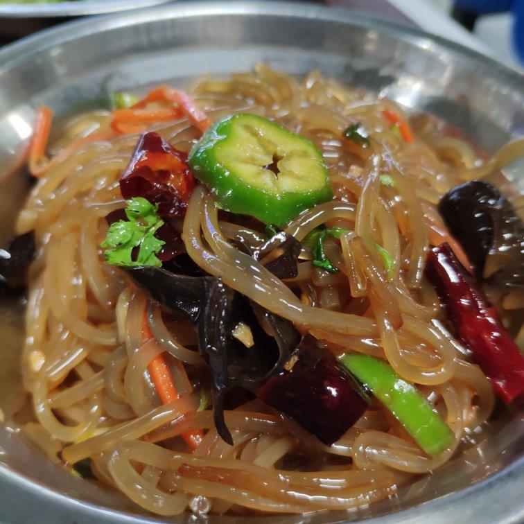 素炒黄豆芽,牛肉丸,海带肉丝,凉拌黄瓜,木耳鸡蛋粉条