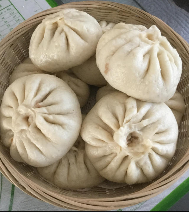 又见包子,想死了😄。今天圆葱切的块儿大一点,更好吃,一包汤儿😋。