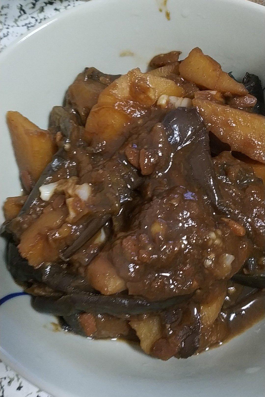 酱茄条、土豆条,还有黄瓜丝拌猪耳朵!嗯!不错!😊