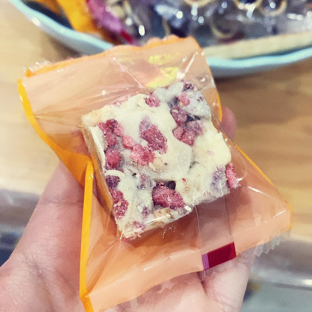 巧克力口味在棉花糖里加了7g黑巧克力币,口味更浓郁