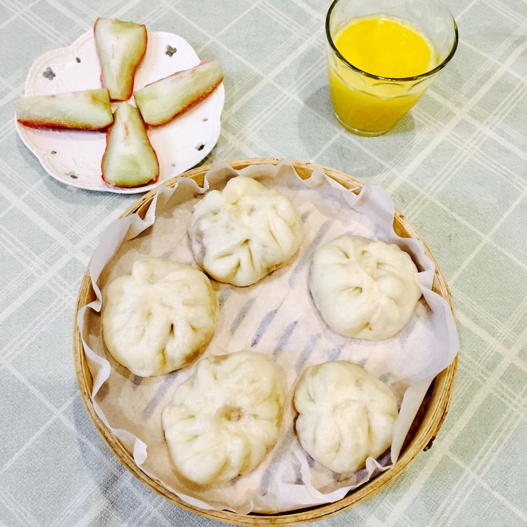 牛肉包子,南瓜汁...