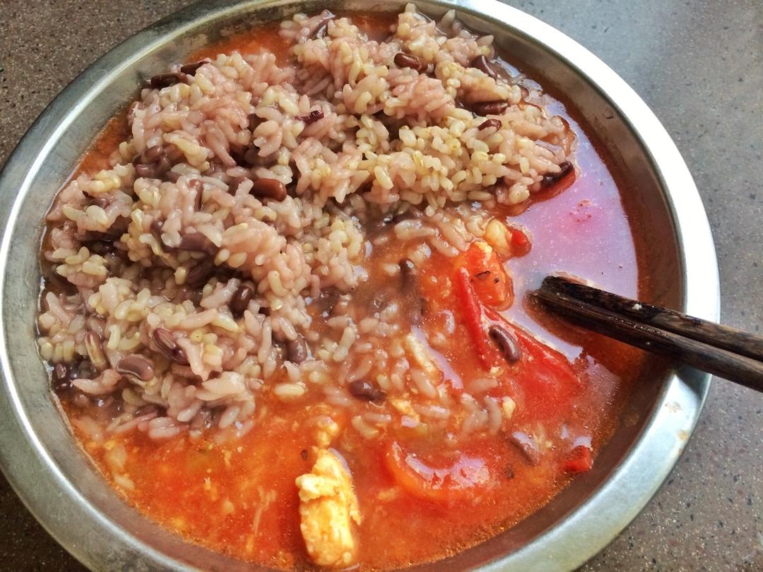 红豆饭+番茄炒蛋+番茄鱼