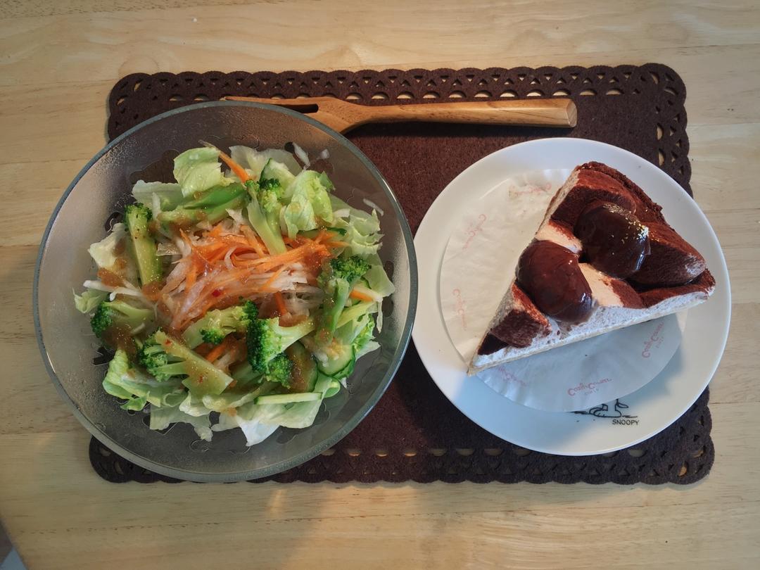 【蔬菜沙拉+🌰栗子🌰奶油拿破仑蛋糕】