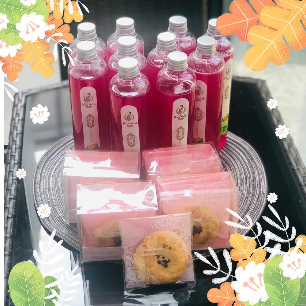 美美的火龙果酵素,自己烤的桃酥饼,颜值高,米道嗲!