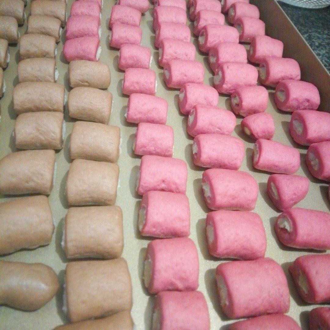做月饼剩下的莲蓉和豆沙馅消耗完毕,做成彩色馒头,味道棒棒👍
