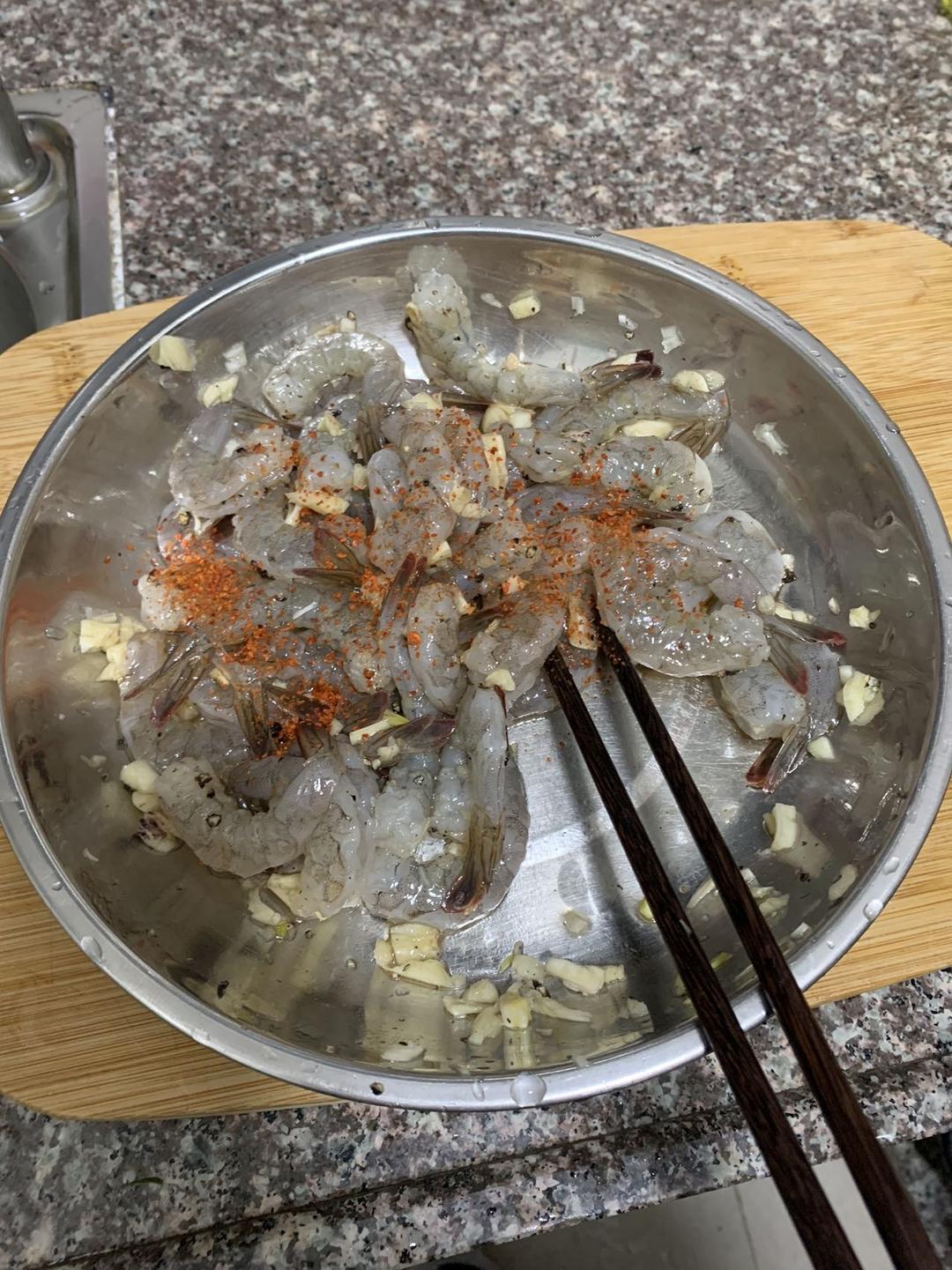1️⃣虾去壳开背去虾线,蒜切成蒜末