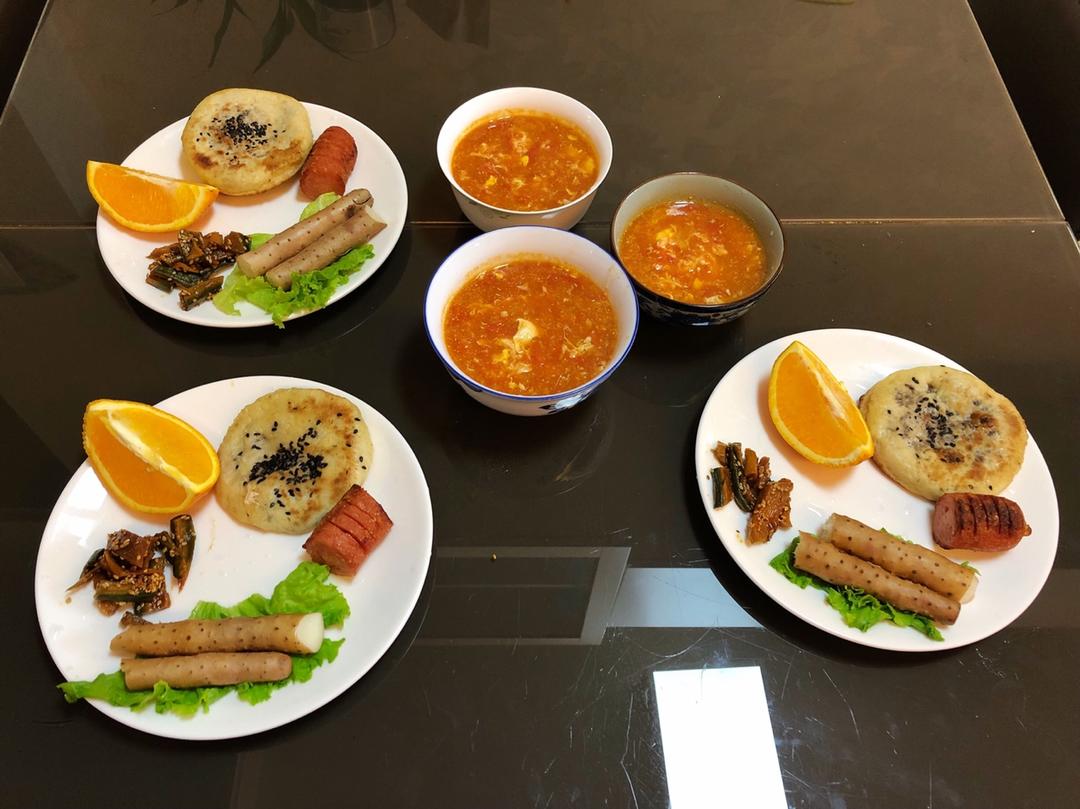 西红柿红肠鸡蛋汤&炸肠&火烧