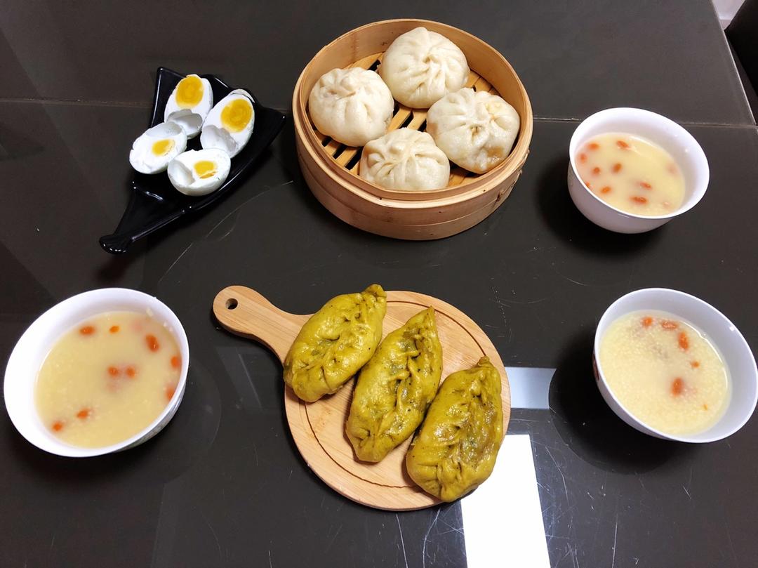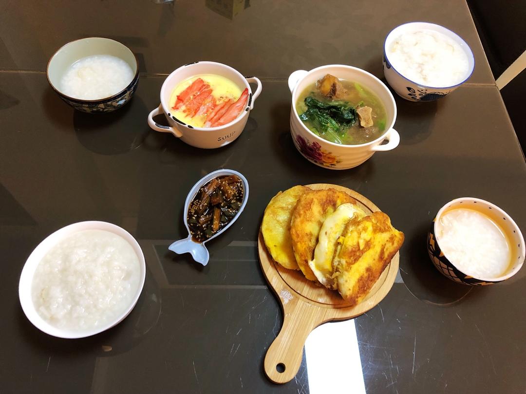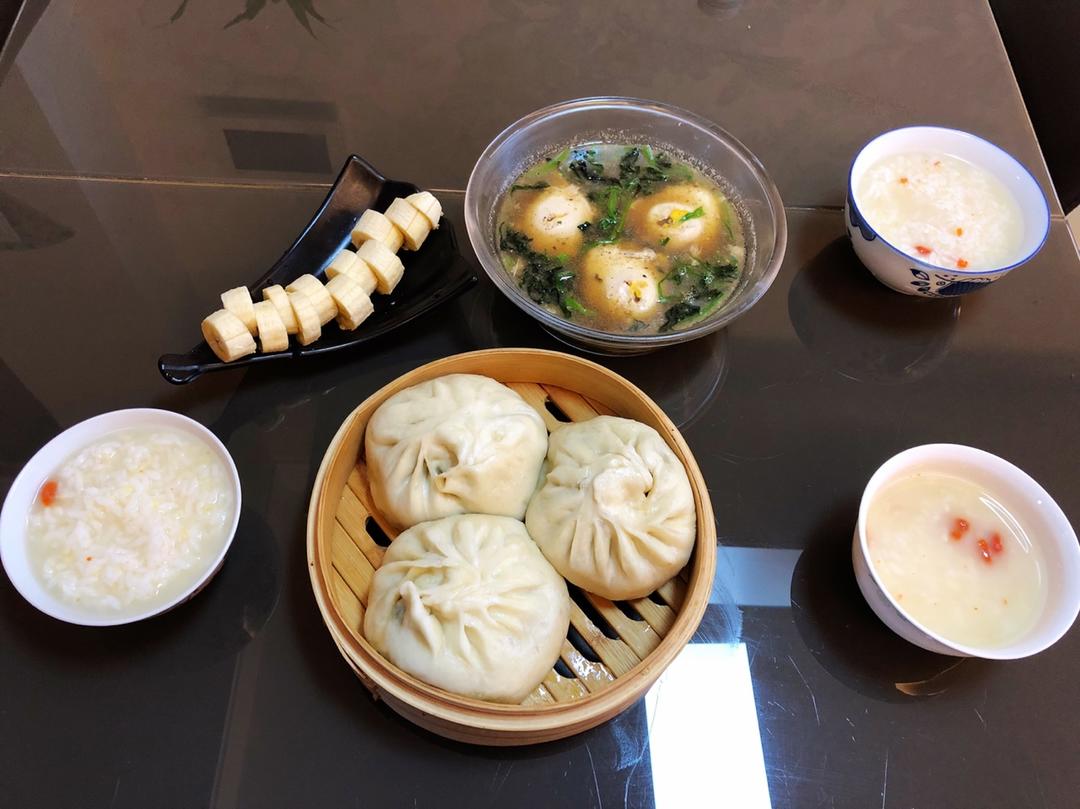 大米粥&海菜包子&骨汤菠菜窝蛋&香蕉会让心情变好!