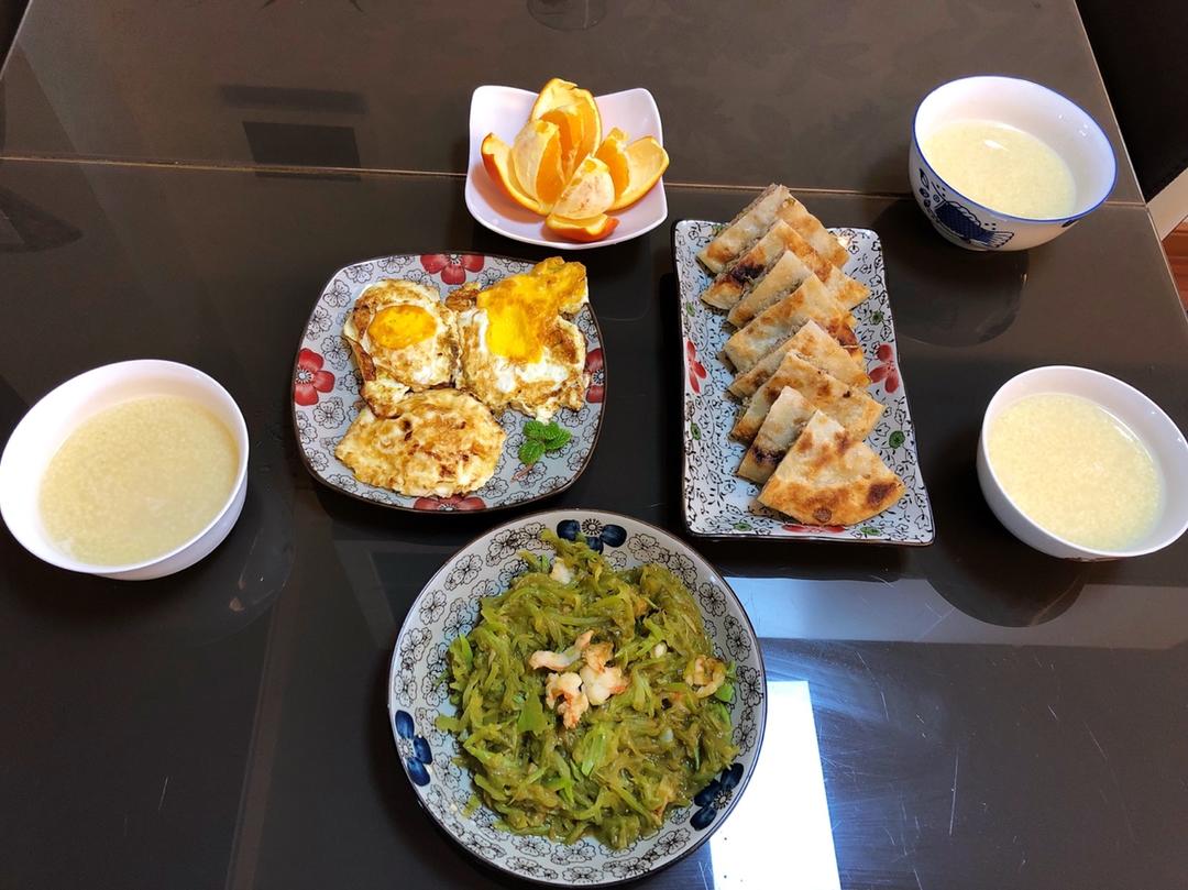 小馅饼&小米粥&清炒莴笋&橙子花&煎鸡蛋