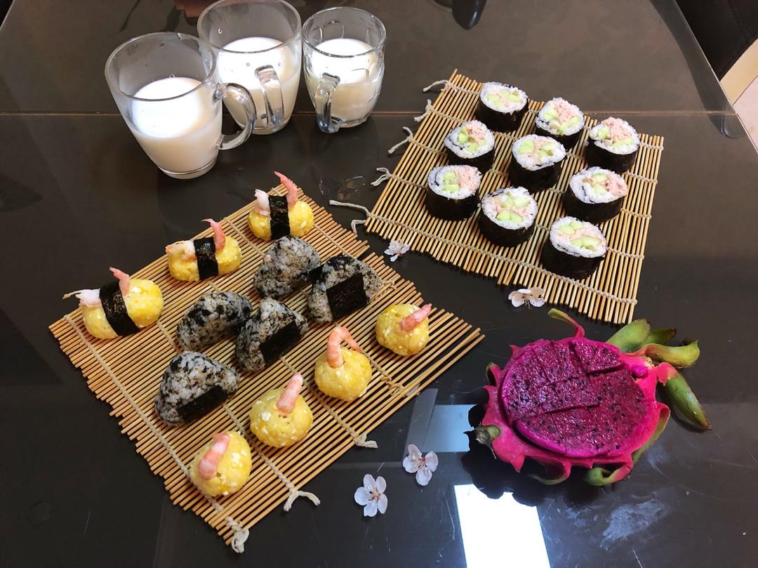 连冷酷的牛总儿都说可爱的小饭团🍙&鲜奶&火龙果&昨晚偷采了几朵杏花🌸