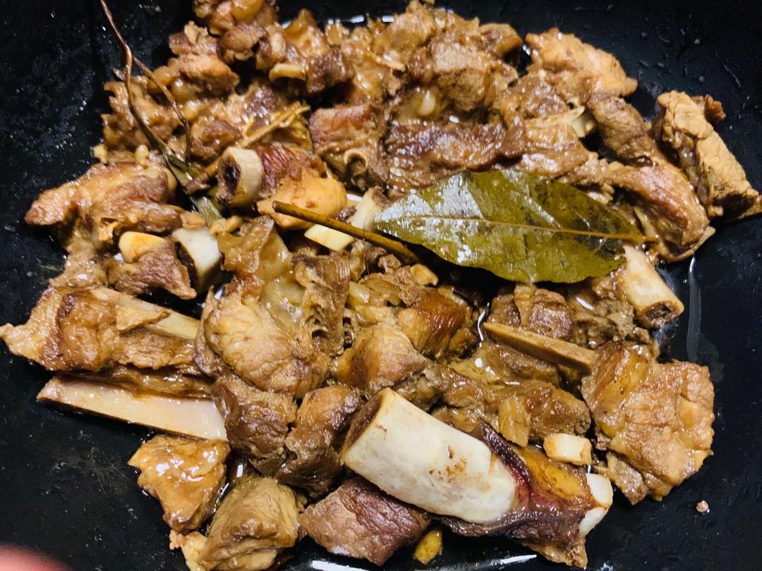 先用水焯熟的排骨 还加了一勺豆瓣酱 中途没有开过盖:P